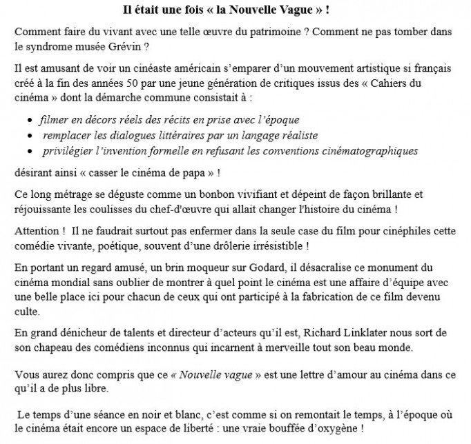 SYNOPSIS: Ceci est l'histoire de Godard tournant "A bout de souffle", racontée dans le style et l'esprit de Godard tournant "A bout de souffle".